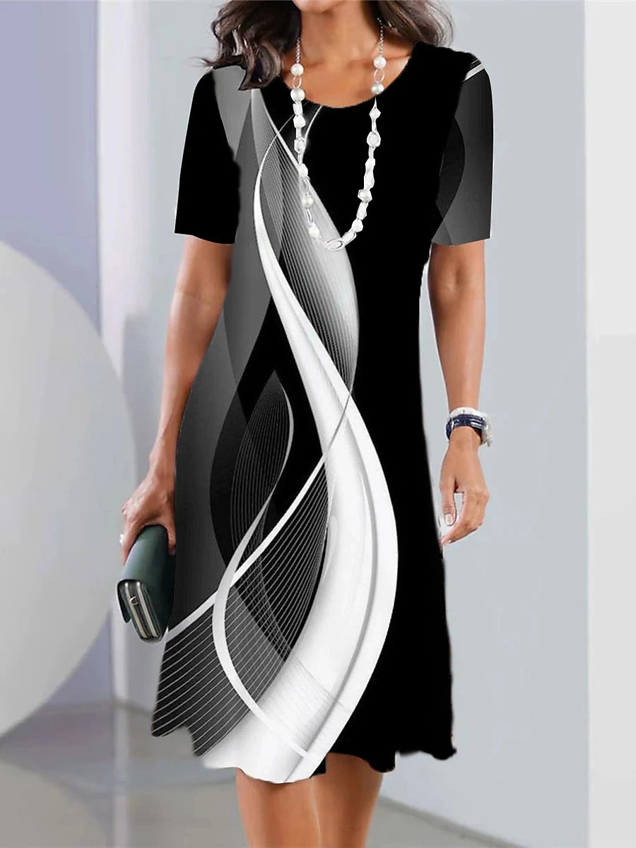 New Women's Dresses Striped Printed Elegant Casual O Neck Short Sleeve Summer Dresses Fashion Ladies Plus Size Clothing Vestidos